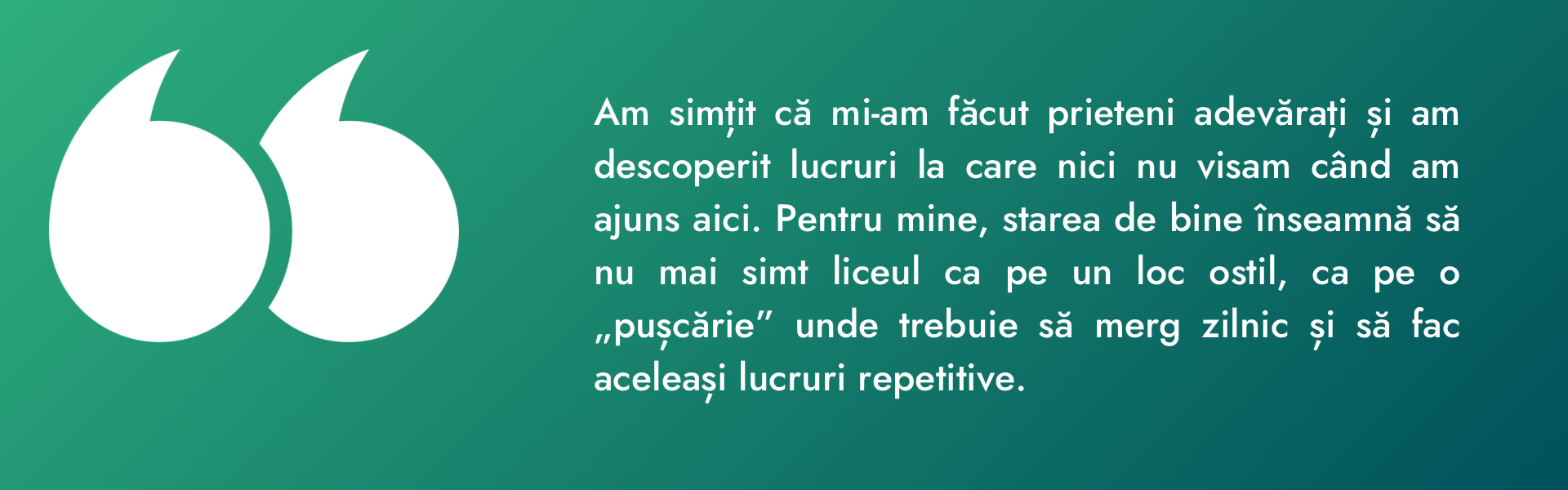 Fiecare sumă redirecționată contribuie la îmbunătățirea stării de bine a comunităților în care lucrăm. Prin proiectele și programele noastre, ajutăm adolescenții, profesorii și părinții să recunoască și să gestioneze problemele de sănătate mintală, oferindu-le sprijinul și instrumentele necesare pentru a depăși momentele dificile.