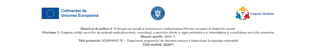 Campania face parte din proiectul „SCREENING TB – Organizarea programului de depistare precoce a tuberculozei la populația vulnerabilă” (COD MySMIS: 324871), cofinanțat din fonduri europene.
